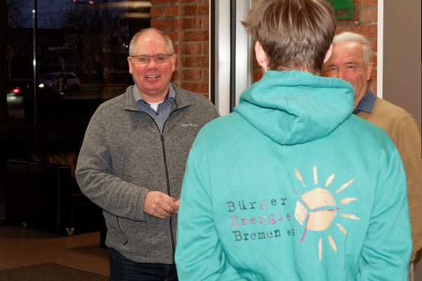 Bei Fingerfood und Getränken waren sich die Anwesenden einig, dass es sich lohnt, hartnäckig und engagiert die Energiewende in Bürger:innenhand voranzutreiben.