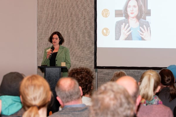 Eine Keynote der Aufsichtsrätin der Stromnetz Berlin GmbH und Mitbegründerin der BürgerEnergie Berlin, Dr. Arwen Colell, griff die Relevanz von Bürger Energie Genossenschaften im Hinblick auf ein Gemeinschaftsgefühl zum Gelingen der Energiewende auf. Obwohl Arwen durch den Bahnstreik nur online zugeschaltet war, hat die Rede bei den Anwesenden einen bleibenden Eindruck hinterlassen und uns darin bestärkt, die genossenschaftliche Gestaltung der Energiewende weiterzutreiben und die Stärkung der Rumpfmuskulatur in den Fokus zu nehmen.
