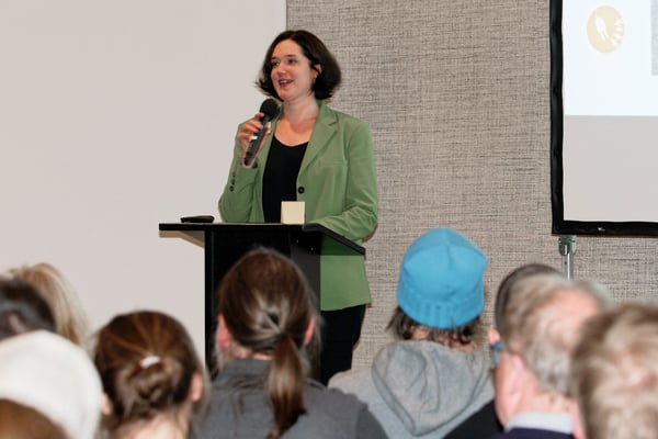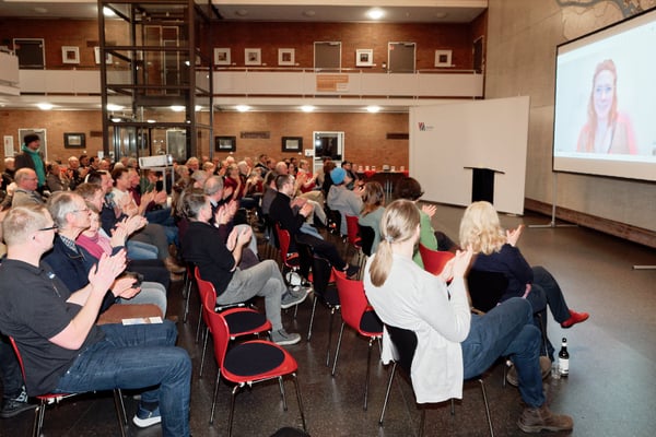 Die Senatorin für Umwelt, Klima und Wissenschaft der Freien Hansestadt Bremen, Frau Kathrin Moosdorf, hat ein Grußwort gesprochen und das Engagement der BEGeno gelobt und den Willen der öffentlichen Hand zur Zusammenarbeit mit unserer Genossenschaft bestärkt.