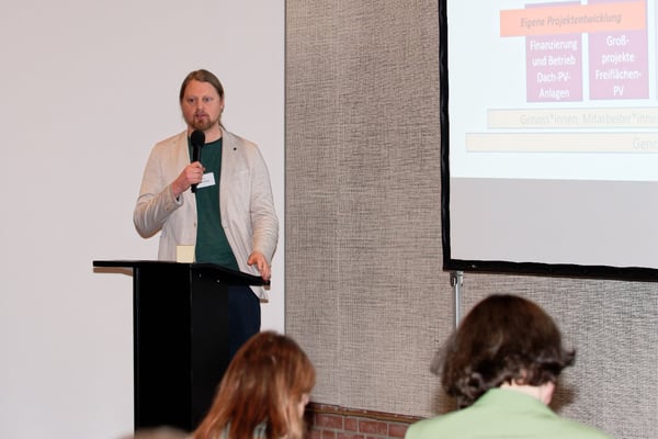 Abschließend präsentierte unser Vorstand Malte Zieher die nächsten Ziele der BEGeno, unter anderem den Aufbau eines neuen Geschäftsfelds, der Projektentwicklung im Bereich Freiflächenphotovoltaik. Denn in Zukunft sollen Solaranlagen auf Dächern und Freiflächen auch im Megawattbereich in Bremen und im Umland von der BEGeno geplant und betrieben werden.