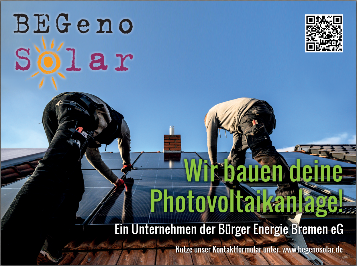 Wir stehen als eingetragener Handwerksbetrieb für die fachgerechte Planung und Montage von PV-Dachanlagen und kooperieren mit leistungsfähigen Spezialisten aus Bremen für Wärmepumpen, Ladeinfrastruktur und Stromspeicher.